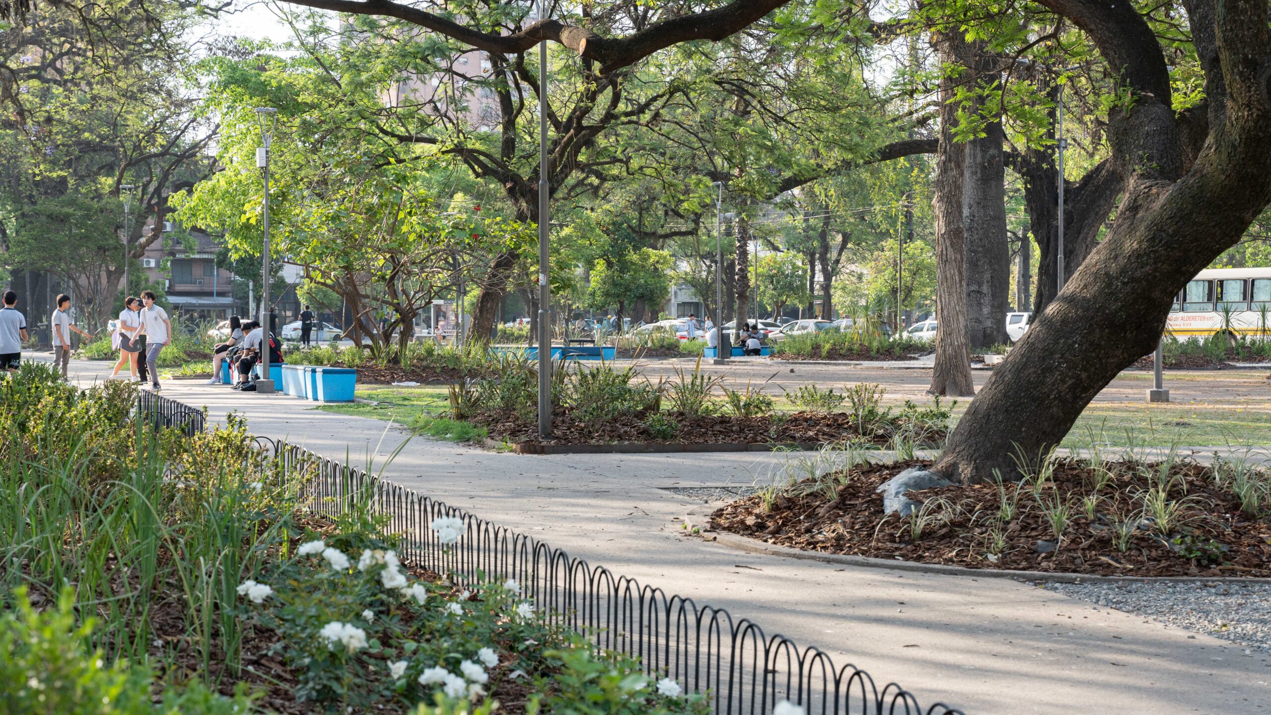 Diseñamos un plan integral de intervención paisajística que combinó restauración patrimonial, regeneración vegetal y diseño funcional. Se plantaron más de 5.000 ejemplares para devolverle vitalidad al espacio verde, se restauraron a nuevo las tres fuentes emblemáticas y se reconfiguraron los canteros con criterios estéticos y técnicos que aseguran un mantenimiento eficiente y sustentable. El resultado es una plaza viva, armónica y preparada para seguir siendo parte activa del día a día del Barrio Sur.